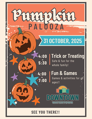 Get ready for a spooktacular evening of family fun in Downtown Watertown! Join us on Friday, October 31, 2025, for our annual Pumpkin Palooza.