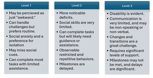 Autism is a spectrum. There are times when you may not be able to tell if someone is living with it, while other times it may be observable right away. Autism is diagnosed in three levels. These levels reflect how autism is affecting a person’s ability to complete tasks, communicate, and be independent.